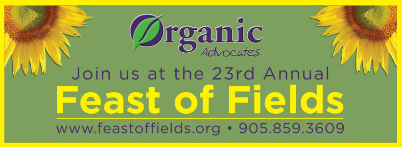 We just wanted to advise everyone of a great upcoming event that celebrates everything organic! Organic Advocates presents their 23rd Annual Feast of Fields event. The event is being held at Cold Creek Conservation Area in the Township of King. Directions are here.